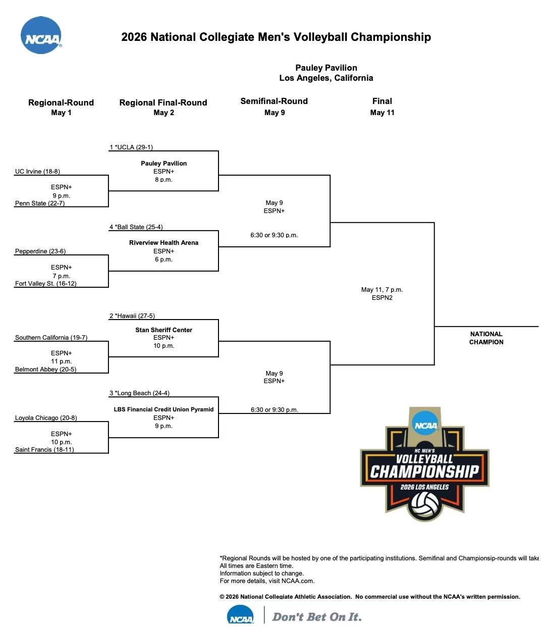 We have been waiting all season for this and this weekend we will begin the opening round of the 2026 NCAA National Collegiate Men’s Volleyball Championship. This twelve team tournament has great matchups that will be sure to deliver top tier volleyball. So let’s dive in!