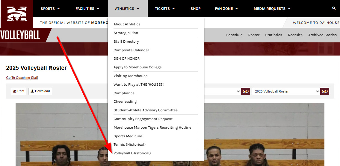 Today, if you go to the Morehouse Athletics website, you can still find the Men’s Volleyball page, but you have to look. Credit to Morehouse for keeping the page around, but moving it at all is not a great sign for the program.2