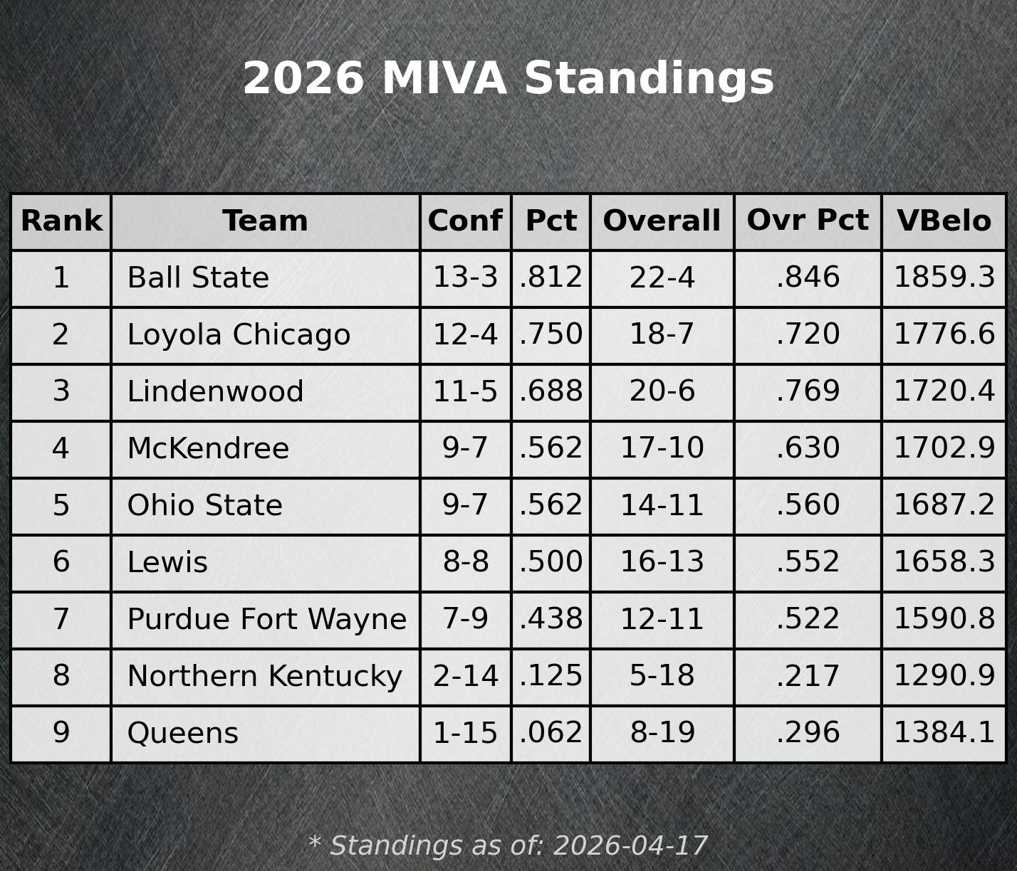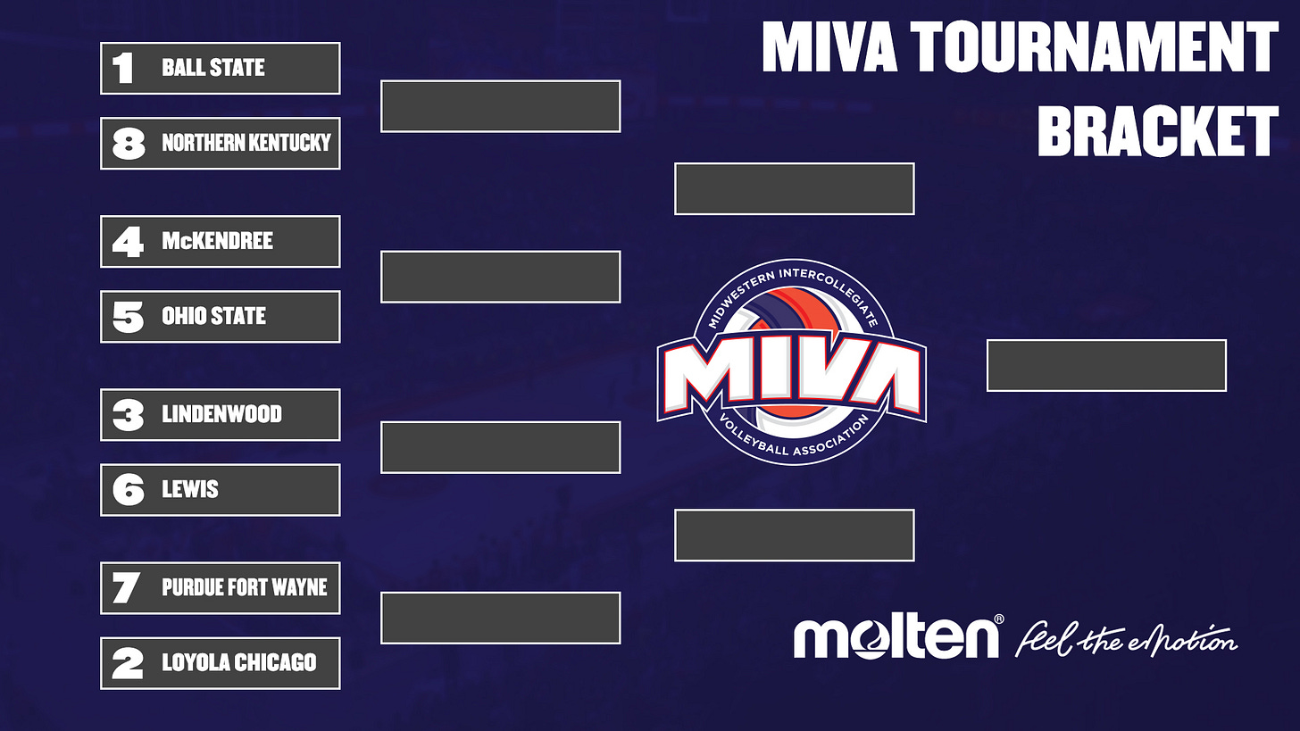 First-year program Northern Kentucky made the tournament which is exciting to see. They just edged out Queens for that final spot. Having competitions across the board for seeds is par for the course with the MIVA. Parity, you love to see it.