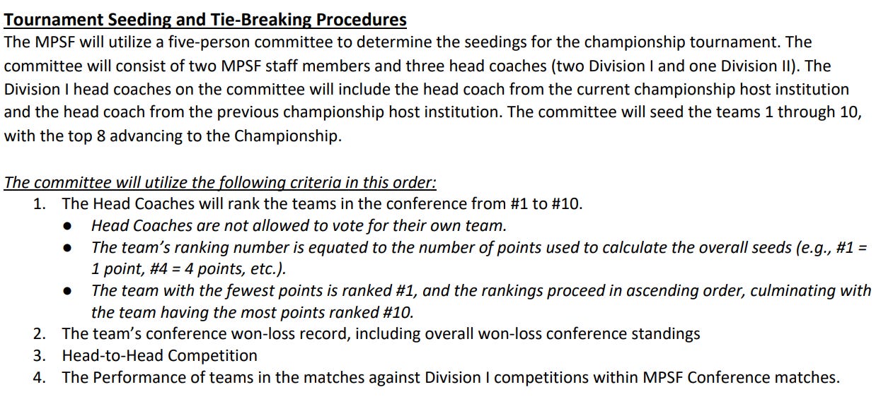 Seeding for the MPSF is done by committee. Conference record is a factor, but ultimately not the only factor.