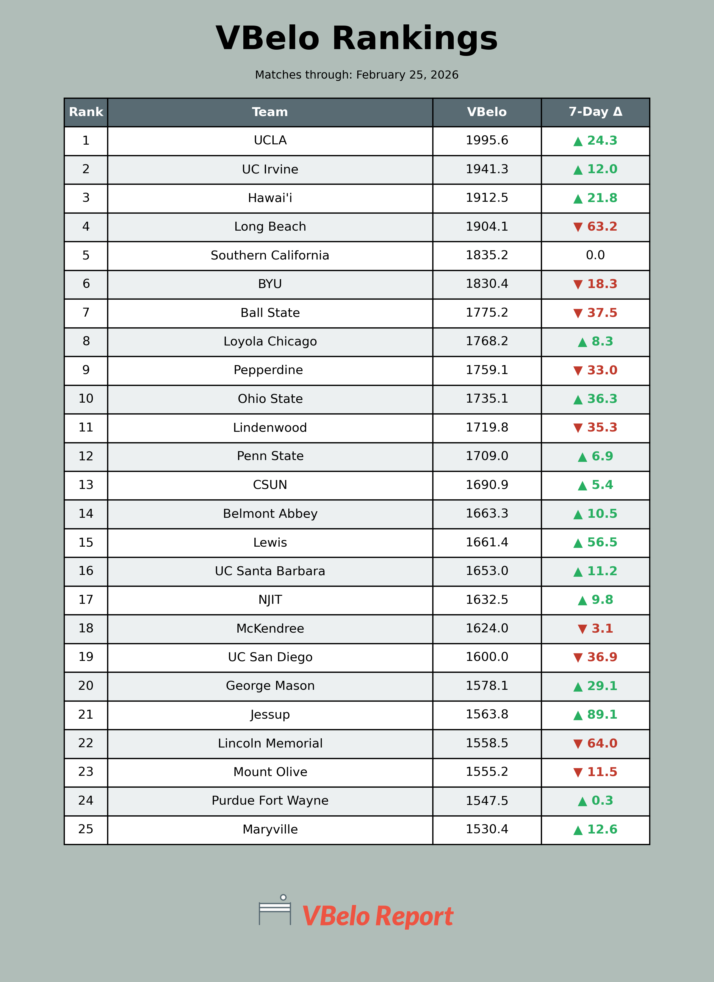 Updated 2026 VBelo Rankings