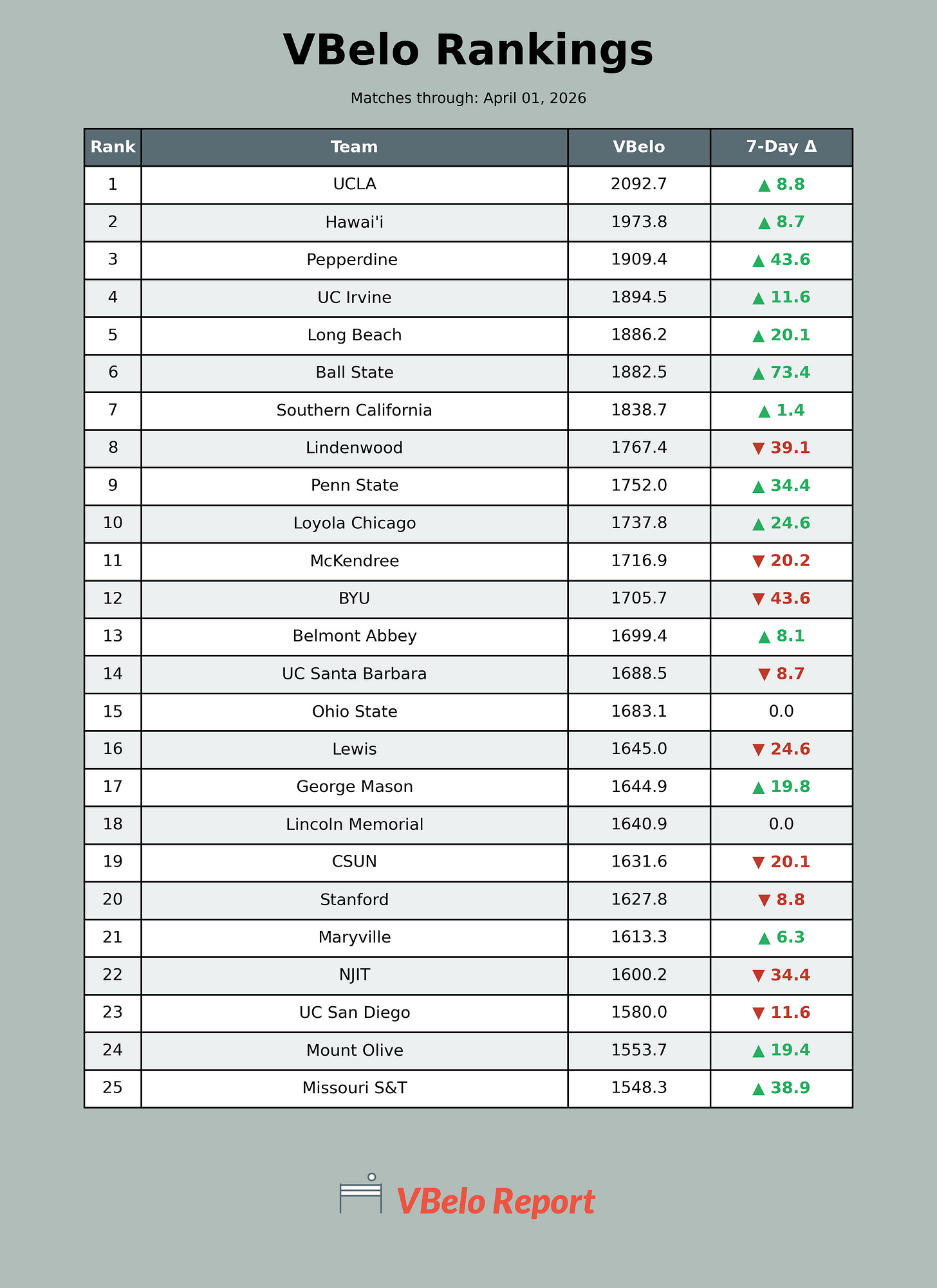 VBelo Rankings - Top 25